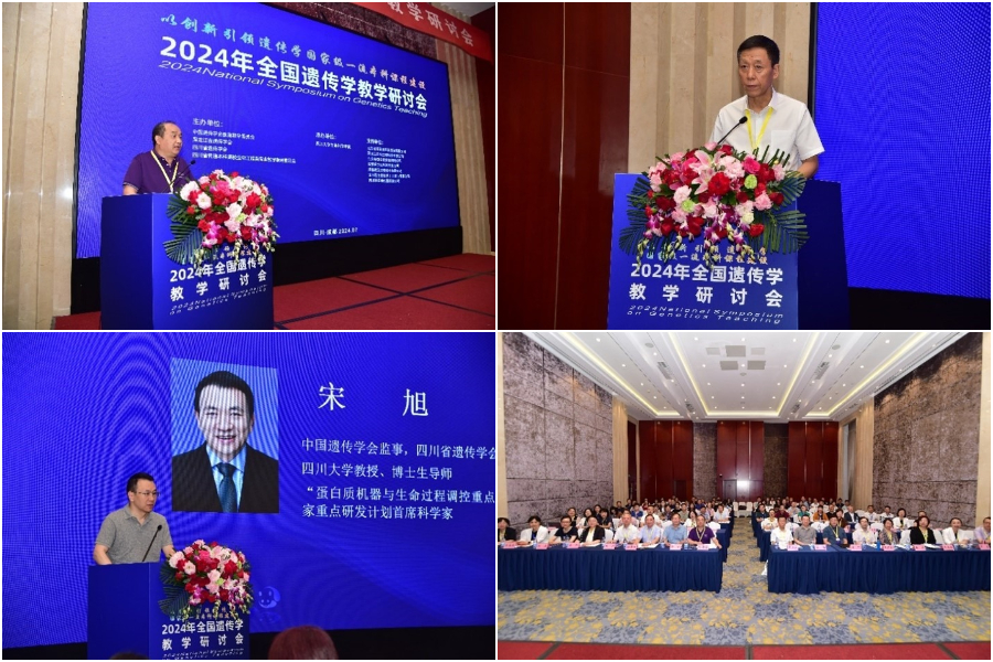 2024年7月19-22日,2024年全国遗传学教学研讨会在四川成都召开。本次研讨会是中国遗传学会第十一届教育教学委员会成立后的第一次年度研讨会,由中国遗传学会教育教学委员会、黑龙江省遗传学会、四川省遗传学会和四川省普通本科高校生物工程类专业教学指导委员会共同主办,四川大学生命科学院承办。中国遗传学会副理事长、教育教学委员会主任委员、黑龙江省遗传学会理事长傅松滨教授,四川省遗传学会理事长宋旭教授,四川省普通本科高校生物工程类专业教学指导委员会主任委员赵云教授,中国遗传学会教育教学委员会副主任委员陈德富教授、孙文靖教授、邢万金教授,西湖大学副校长许田教授,人民卫生出版社邬洁编审,高等教育出版社王莉编审,中国遗传学会教育教学委员会委员以及来自北京大学、复旦大学、南开大学、山东大学、哈尔滨医科大学等50余所高等院校和出版社及参展企业百余位专家学者参加了本次研讨会。