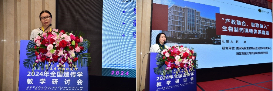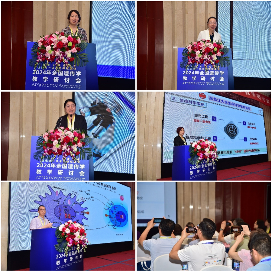 在会议的第二阶段,李海英教授进行了"一流专业背景下的《分子生物学》一流课程建设"的主题报告。报告中介绍了黑龙江大学生命科学院《分子生物学》一流课程的建设经验。高等教育出版社的王莉编审以"数字化背景下的课程与教材建设及出版"为题介绍了高等教育出版社在教材建设中的创新举措与成绩。罗兰教授、郑红教授分享了《医学遗传学》一流课程建设的特色与经验。谢建平研究员以"基于临床和全球生物大数据开展遗传学研究与教学"为题,探讨了生物大数据为核心的科教融合策略。